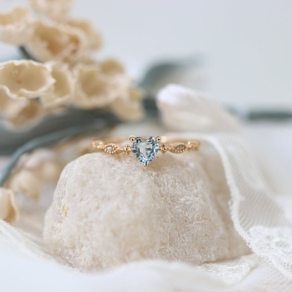 Fashion Sky Blue Glass Stone Love Heart Ring